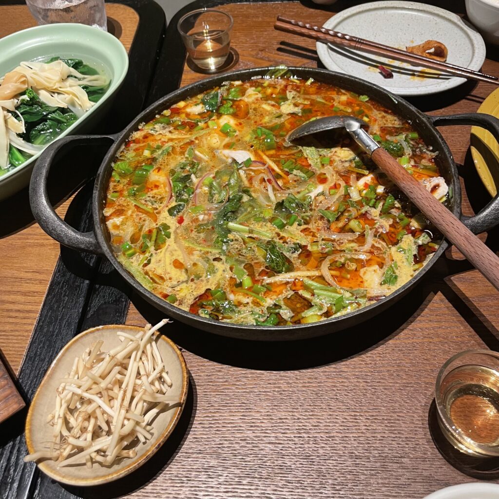 一見もやしのように見えますが、これは「魚腥草」という四川・雲南・貴州地域でよく食べられる野菜だそう。漢字を見て、魚?と疑問に思われた方、鋭いです。これは ”魚のような匂いがする草” という意味で、中国国内でも好き嫌いが分かれる野菜なんだとか。ちなみに、一緒に同行した中国人スタッフは、一口も手を付けませんでした。(笑)