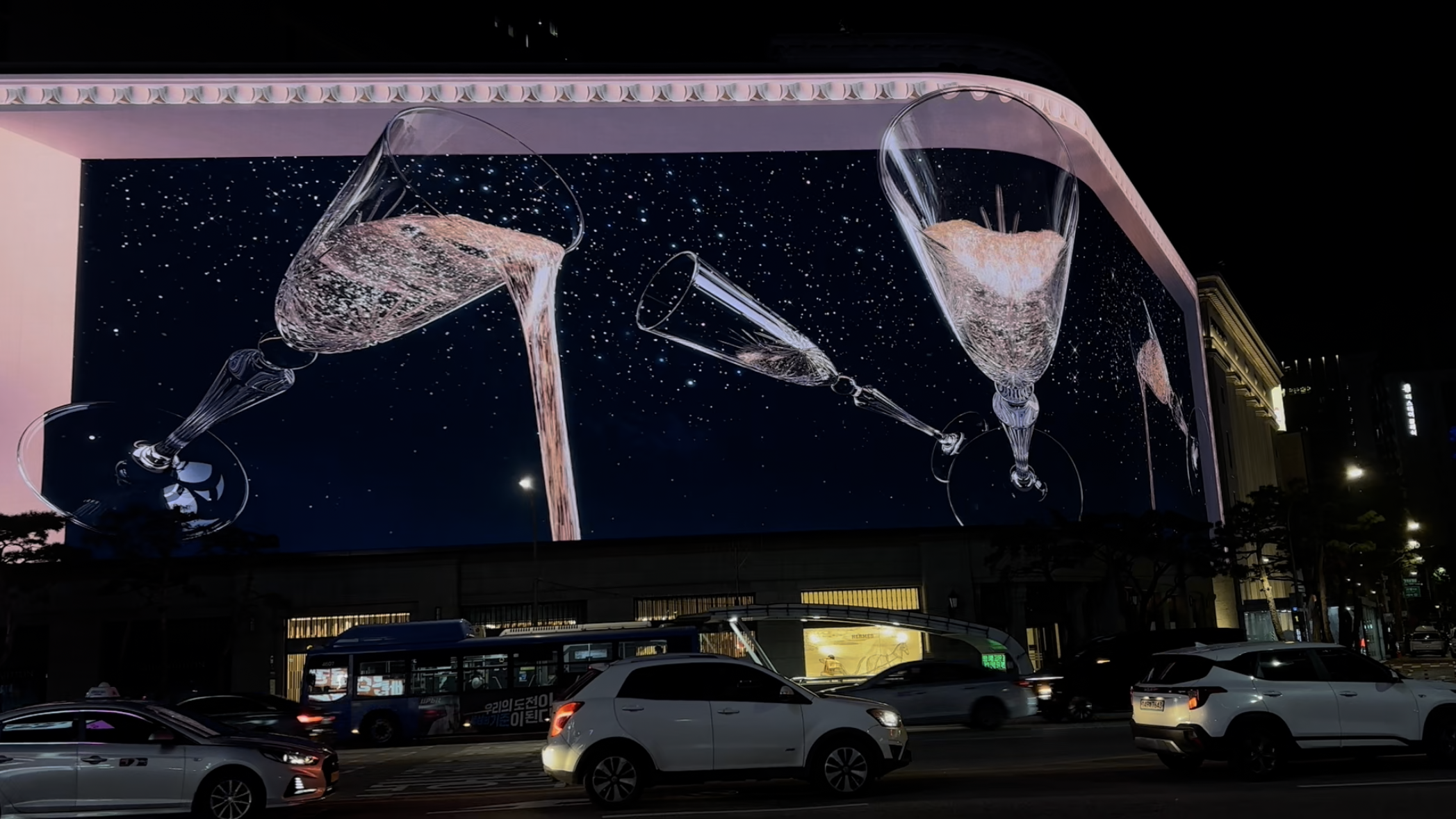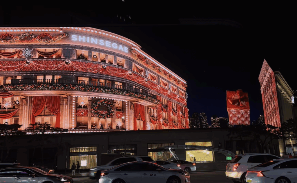 韓国はクリスマスを盛大に祝う雰囲気があり、街中が早くもホリデームードでした。ちょうど宿泊先の近くに、有名なイルミネーションスポットがあったので、立ち寄ってみることに。巨大なスクリーンに映し出される4分間の壮大なショーは本当に素敵で、思わず4回も見てしまいました。